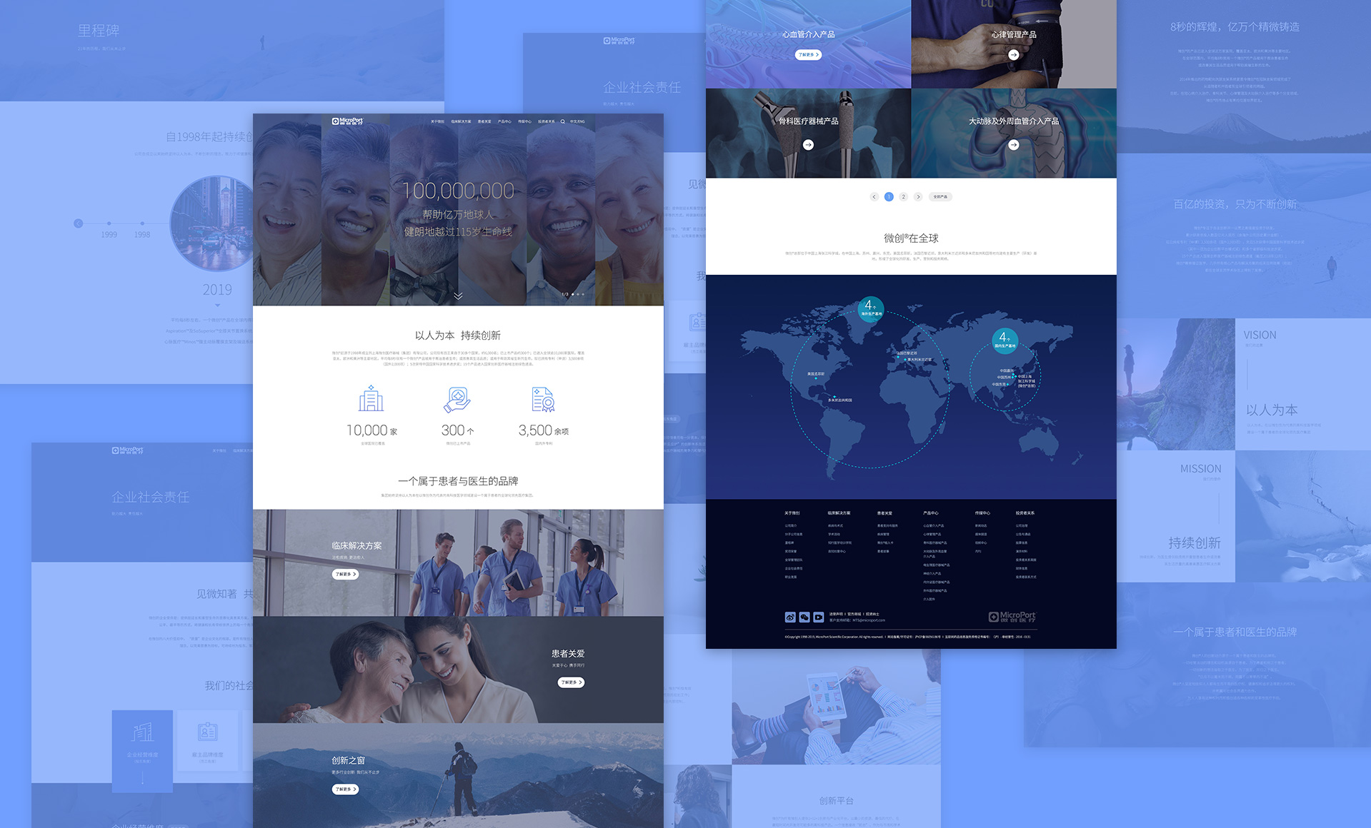 目前全球医(yī)疗市场的區(qū)域结构而言,美國(guó)、欧洲和日本仍是主要市场,随着这些地區(qū)的體(tǐ)系日益完善和市场扩大,其增長(cháng)空间已十分(fēn)有(yǒu)限。一些新(xīn)兴的區(qū)域市场,如中(zhōng)國(guó)、印度等代表亚太地區(qū),医(yī)疗器械市场近几年一直保 持较高的增長(cháng)速度,成為(wèi)带动全球市场增長(cháng)的重要區(qū)域。近年,中(zhōng)國(guó)市场变幻莫测,公(gōng)司為(wèi)了确保增長(cháng)大型并購(gòu)不断。数字化成為(wèi)关键词, 各大公(gōng)司争相布局,顶级医(yī)疗企业排位争夺愈发水深火热。单纯信息展示,内容叠加的官网已经无法满足企业发展 的要求,新(xīn)的官网需要以用(yòng)户為(wèi)中(zhōng)心,為(wèi)患者、 医(yī)生、求职者、投资者提供高效率, 高满意度,高价值的全新(xīn)官网。我们建议微创医(yī)疗建立一个集信息传递、用(yòng)户服務(wù)、品牌传播為(wèi)一體(tǐ)的全新(xīn)官网。