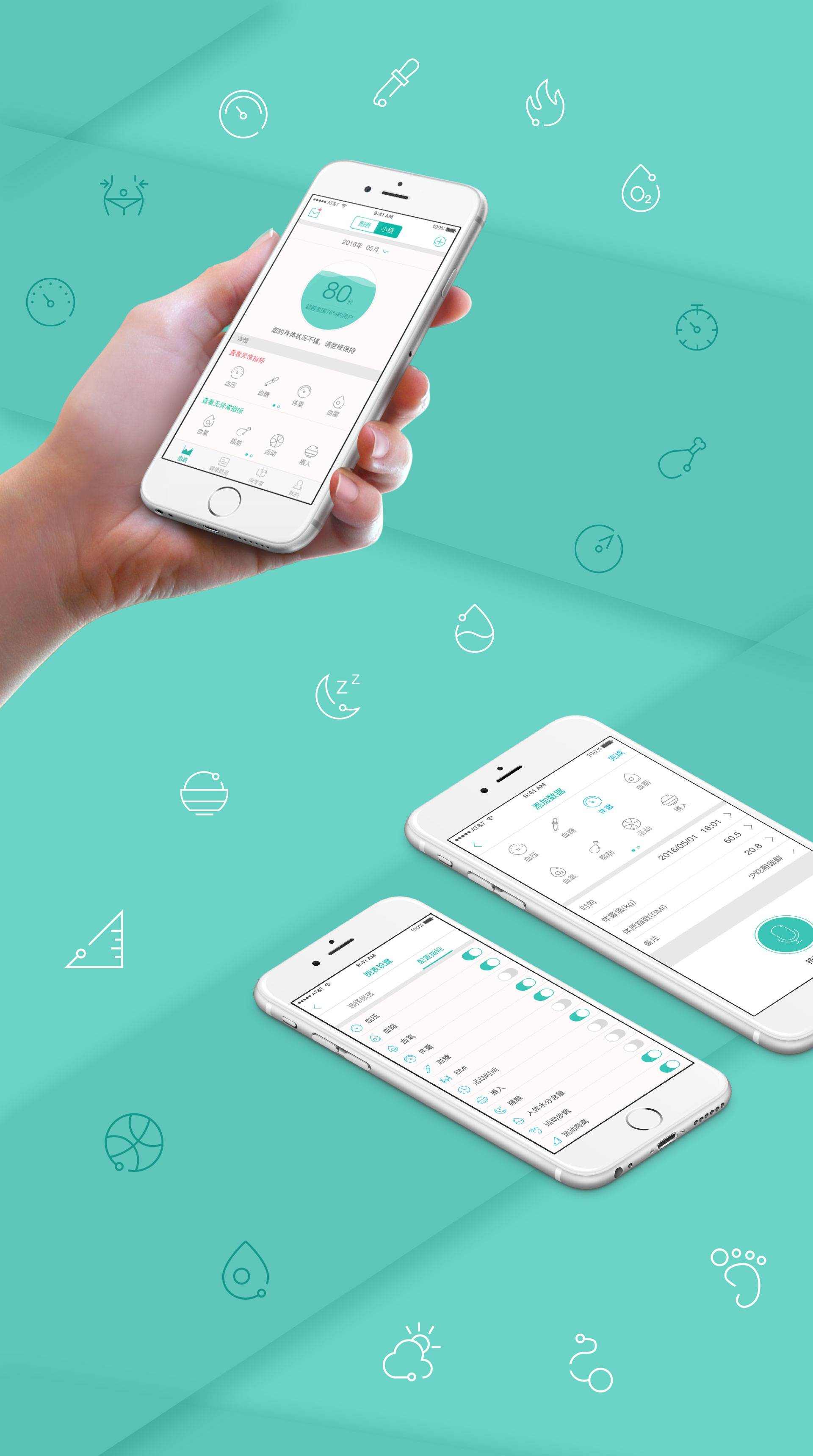 ICON设计上采用(yòng)极简的線(xiàn)性图标,線(xiàn)与圆代表图表特征上的線(xiàn)和数据点,选中(zhōng)的图标使用(yòng)明亮的绿色,与線(xiàn)性的图标形成强烈的对比。
