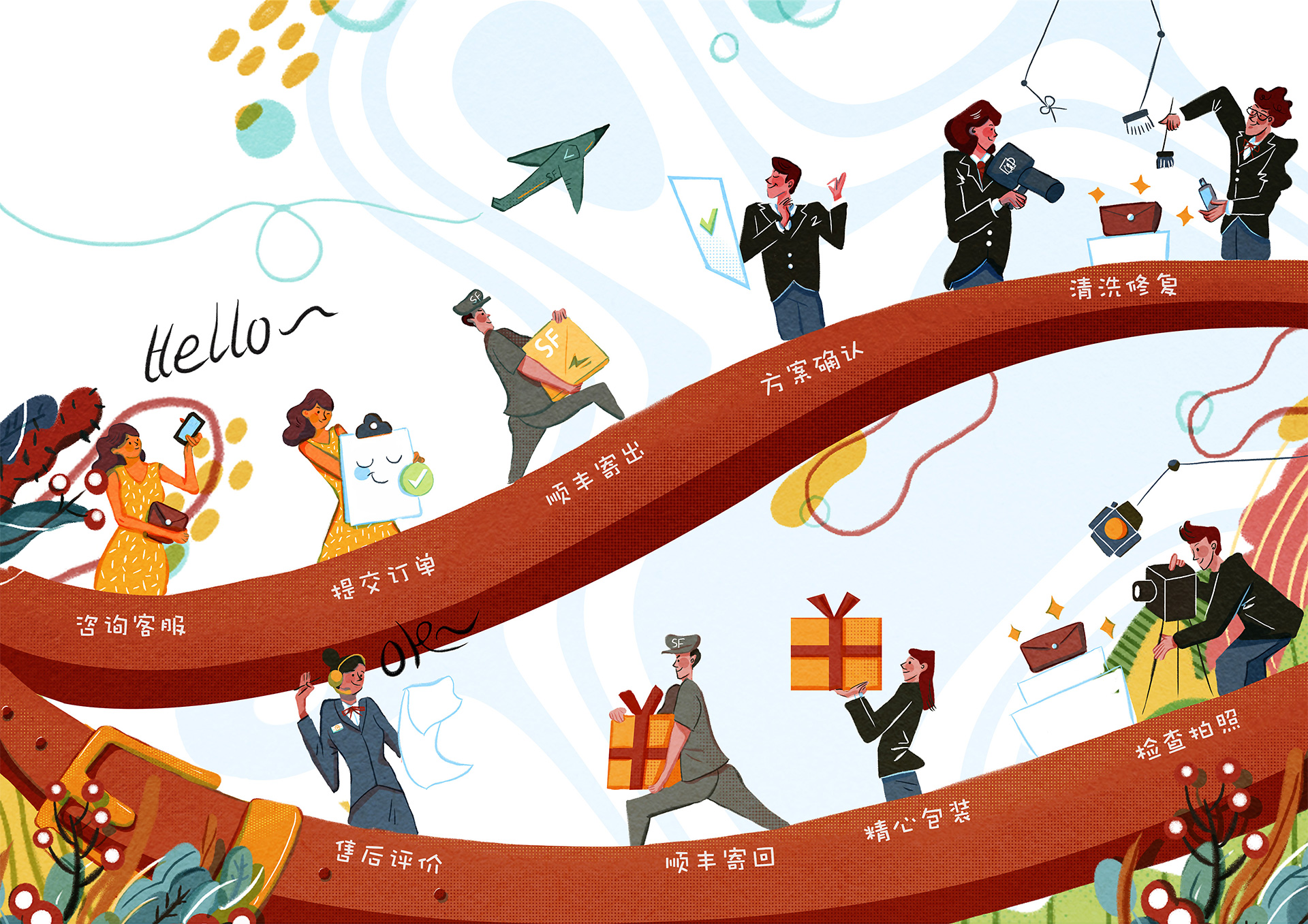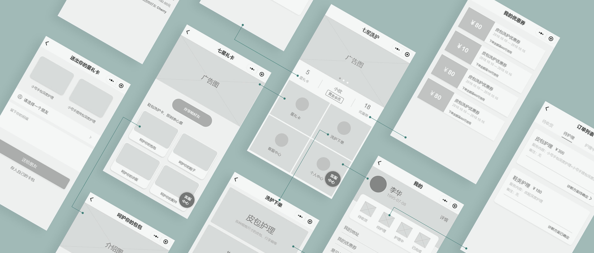 项目开始前,我们对七星洗护的业務(wù)流程进行了了解与體(tǐ)验,研究每一个环节在用(yòng)户體(tǐ)验流程中(zhōng)的重要性与角色。梦洁希望七星洗护能(néng)带给用(yòng)户尽可(kě)能(néng)简洁的步骤,使用(yòng)户能(néng)更轻松地通过七星洗护完成自己的洗护目的,最大程度地减少用(yòng)户的时间成本与心理(lǐ)负担。在七星洗护最后确定下来的流程步骤中(zhōng),用(yòng)户只需要在小(xiǎo)程序上了解洗护的类别后下单,七星洗护就可(kě)以安(ān)排快递上门取件,减少用(yòng)户寄快递的成本,接下来的所有(yǒu)步骤都由七星洗护完成,用(yòng)户可(kě)以在小(xiǎo)程序上实时监控洗护进度与情况,最后七星洗护会将洗护完成的件寄给客户,整个过程可(kě)以让用(yòng)户真正做到“足不出户”也可(kě)以将身边需要好好打理(lǐ)的事物(wù)清洗得干干净净,使用(yòng)户能(néng)轻松享受品质(zhì)生活。